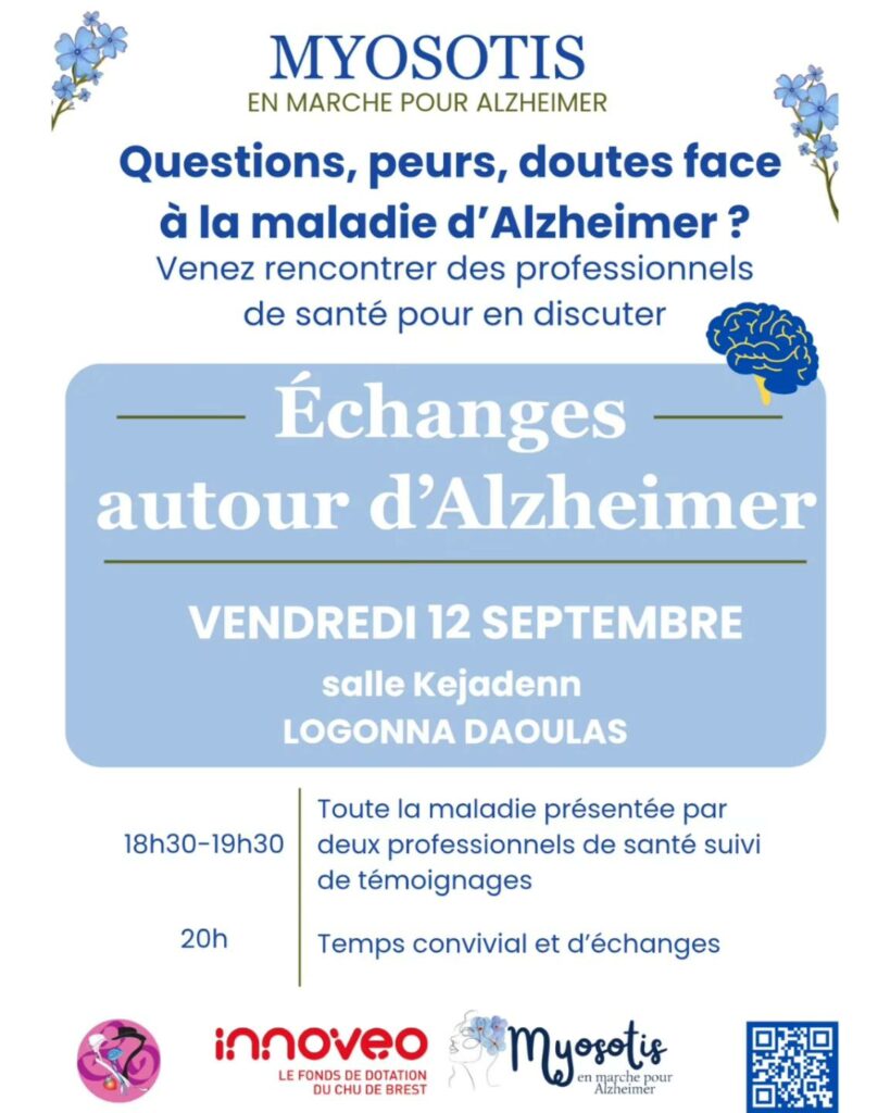Nous vous invitons à un temps d’échanges autour de la maladie d’Alzheimer, le vendredi 12 septembre à 18h30 à la salle Kejadenn de Logonna-Daoulas.
